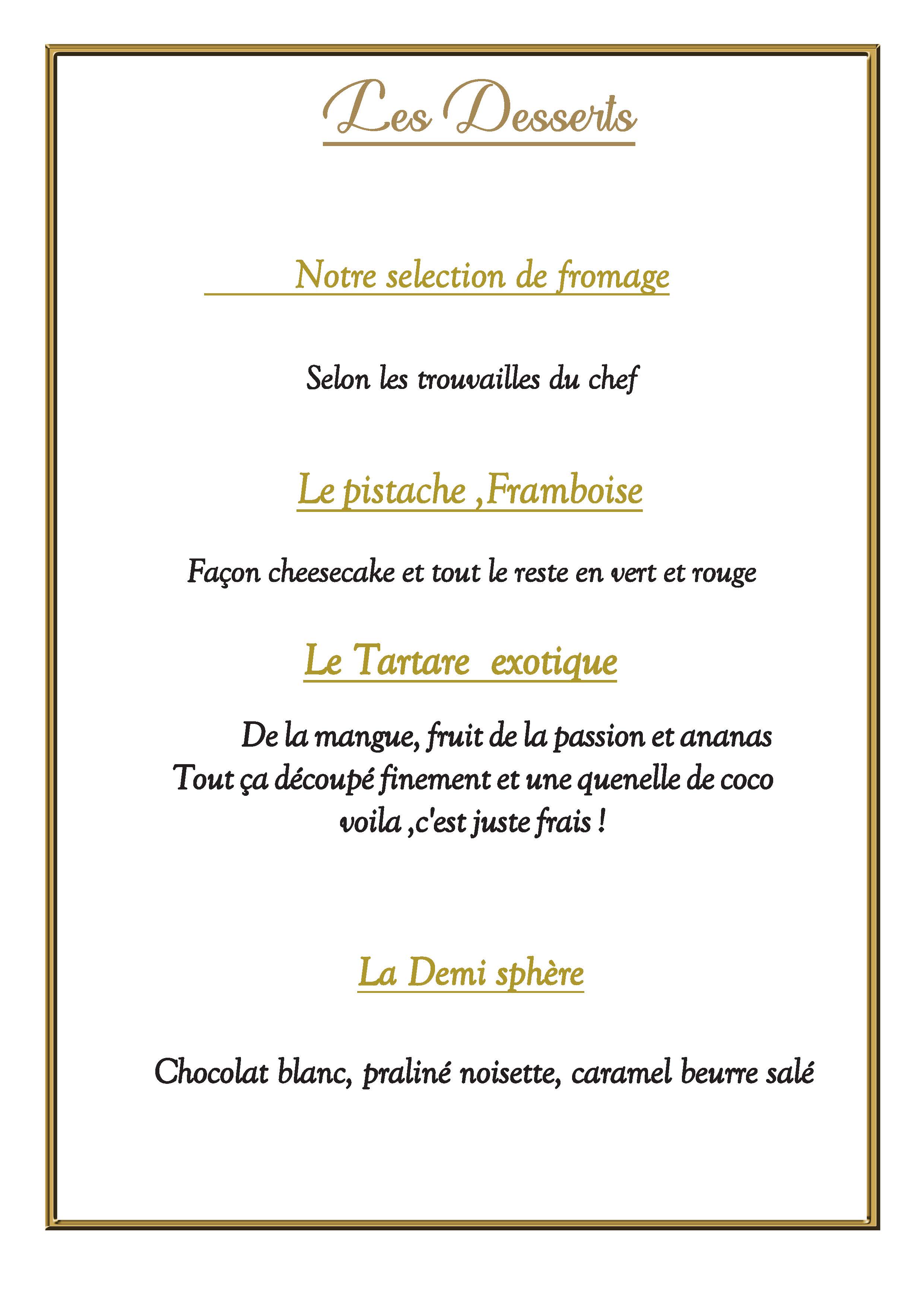 Laissez vous tenter par les plats préparés par notre Chef.
