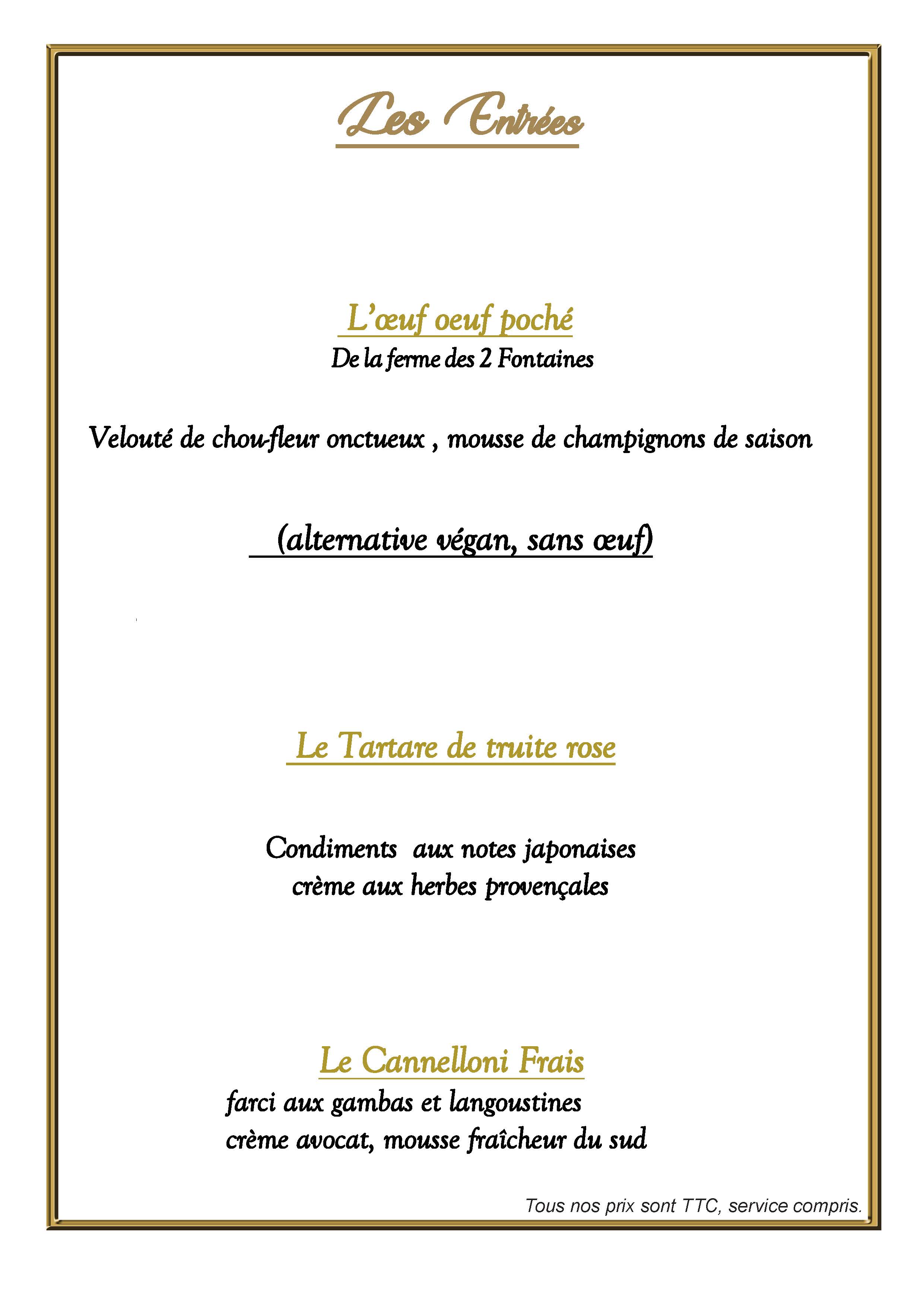 NOTRE CARTE ET MENUS DE SAISON